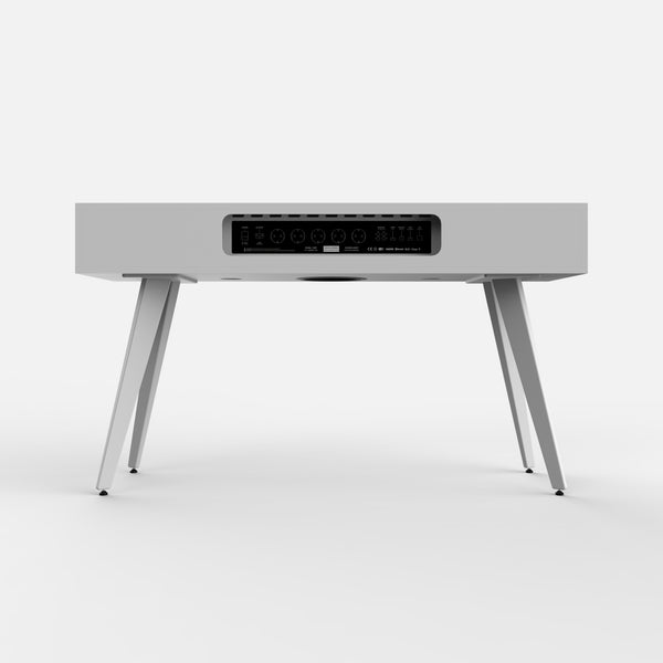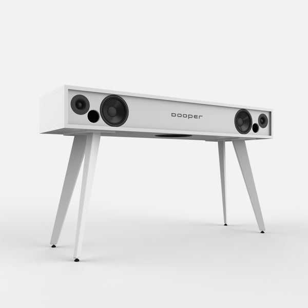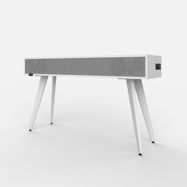Auto-amplified 2.1 high-fidelity sound system with 700 W of real power. Wireless connection through Wi-Fi and Bluetooth. Rear slot for connecting various devices and cable management. Side control panel and physical remote control. App for tablets or smartphones. Stand-By function to save consumption. Multi-Room function to connect peripheral speakers. Supported streaming services.
