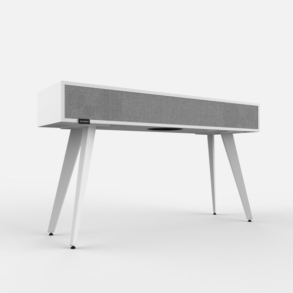 Local solid oak wood exterior with PEFC and FSC certification treated with natural oils. Interior enclosures made of birch plywood board and phenolic glue. Front frame handcrafted with ecological rattan cord fabric or fireproof polypropylene acoustic fabric.