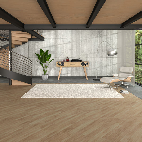 Sistema de sonido 2.1 de alta fidelidad autoamplificado con 700 W de potencia real. Conexión wireless a través de Wi-Fi y Bluetooth. Ranura posterior para la conexión de varios dispositivos y la organización del cableado. App para control remoto mediante tabletas o smartphones. Panel de control lateral y mando a distancia. Función Stand-By para ahorrar consumo. Función Multi-Room para conectar altavoces periféricos. Servicios de streaming compatibles.