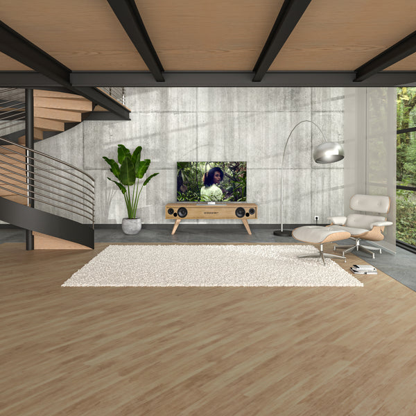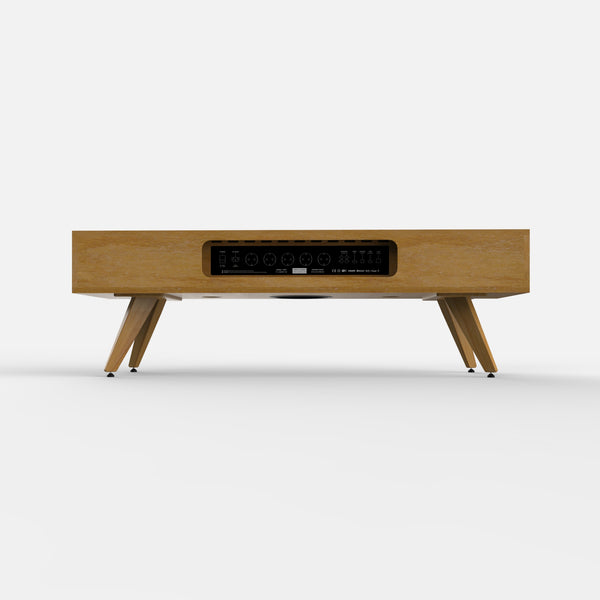 Sistema de sonido 2.1 de alta fidelidad autoamplificado con 700 W de potencia real. Conexión wireless a través de Wi-Fi y Bluetooth. Ranura posterior para la conexión de varios dispositivos y la organización del cableado. App para control remoto mediante tabletas o smartphones. Panel de control lateral y mando a distancia. Función Stand-By para ahorrar consumo. Función Multi-Room para conectar altavoces periféricos. Servicios de streaming compatibles.